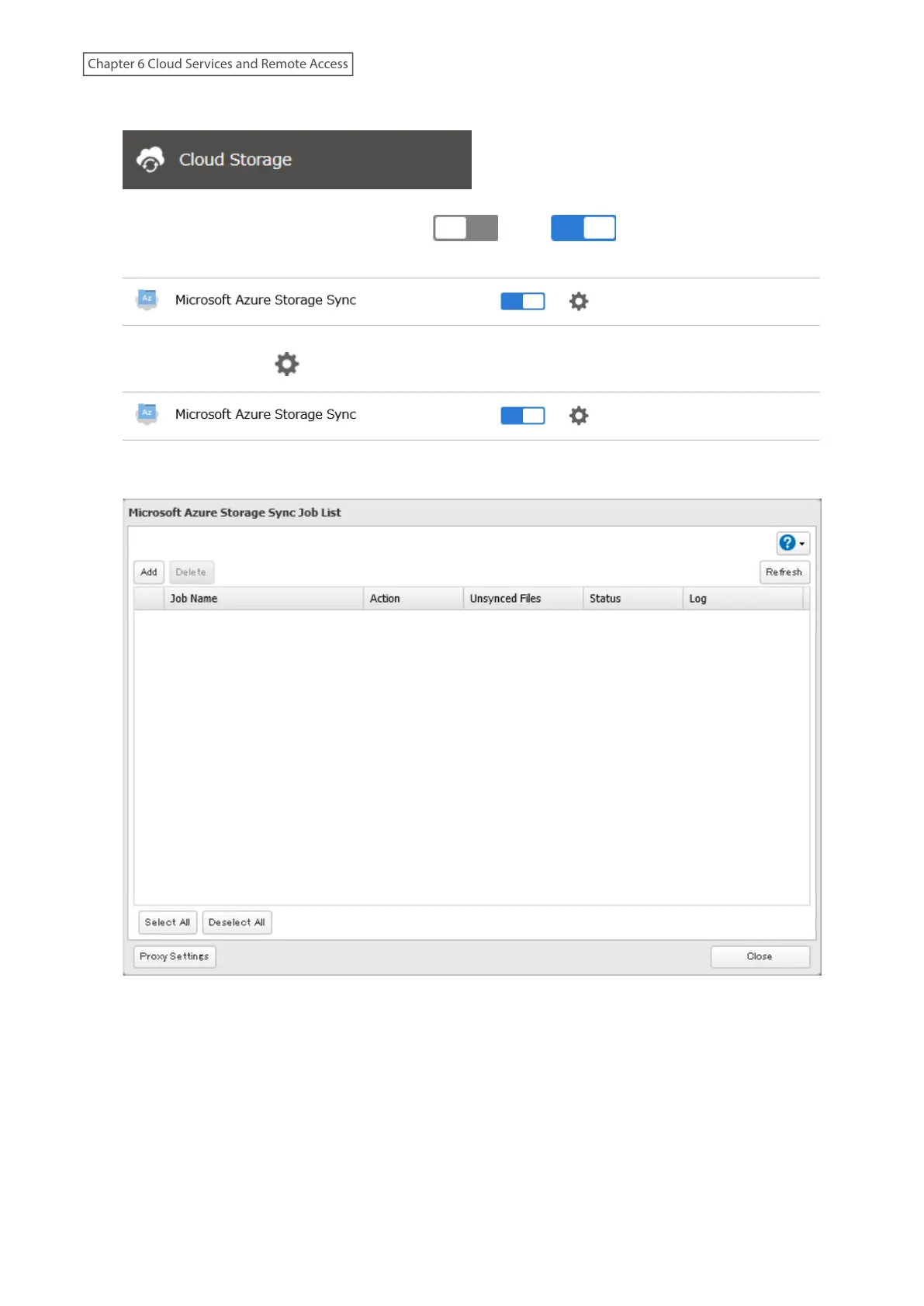3 Move the Microsoft Azure Storage Sync switch ( ) to the position to enable Microsoft