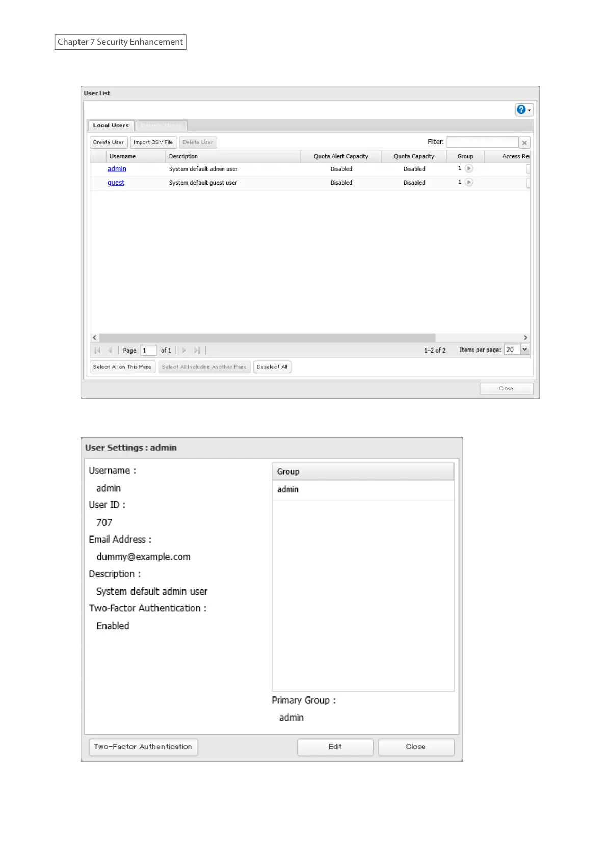 3 Select the logged-in user for whom two-factor authentication will be disabled.
