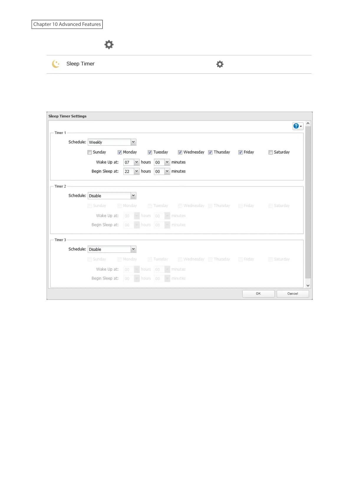4 Specify the timer interval, wake-up time, and time to enter sleep mode, then click OK.