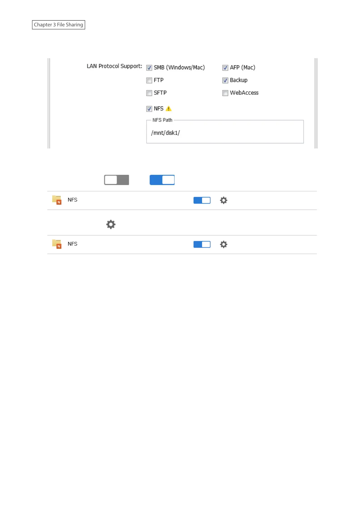 6 Move the NFS switch ( ) to the position to enable NFS.
