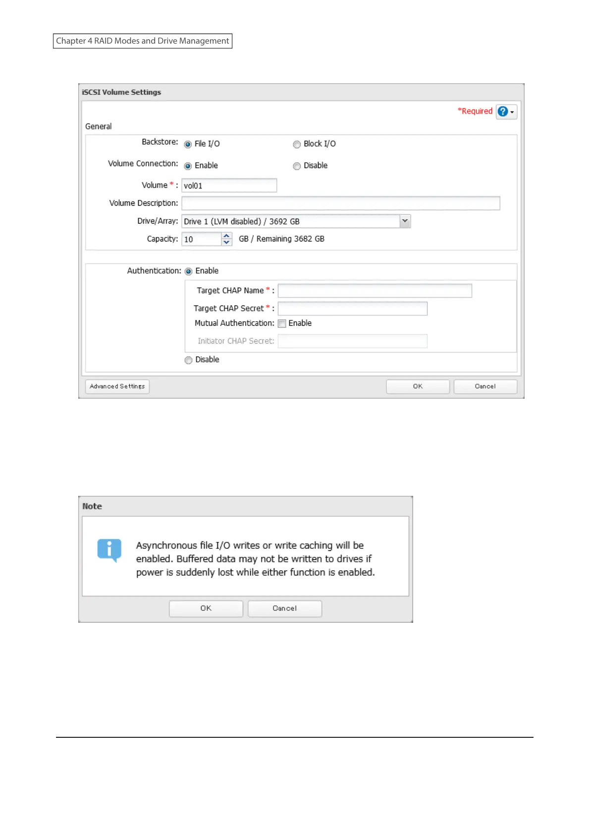 • If you have selected “Block I/O”, write cache (WCE) cannot be configured from the “Advanced Settings” page.