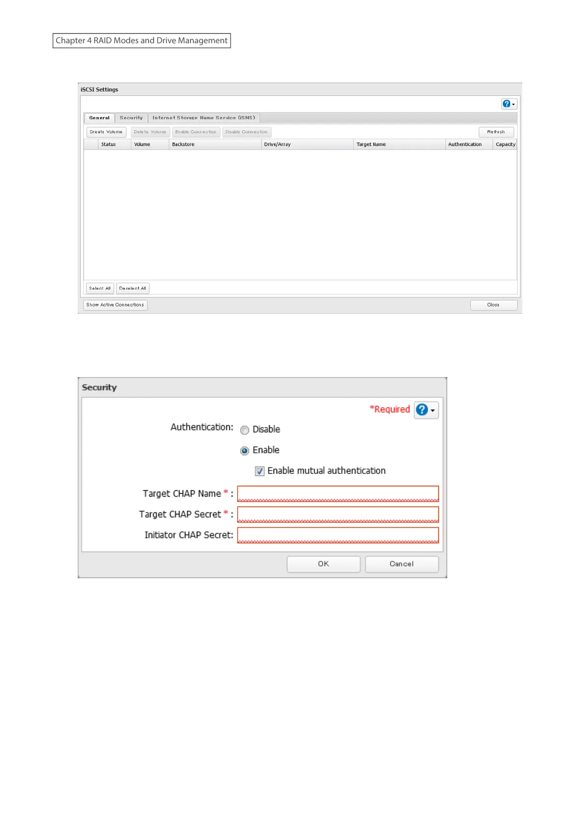 Note: To enable mutual authentication in addition to target CHAP name and secret authentication, select the