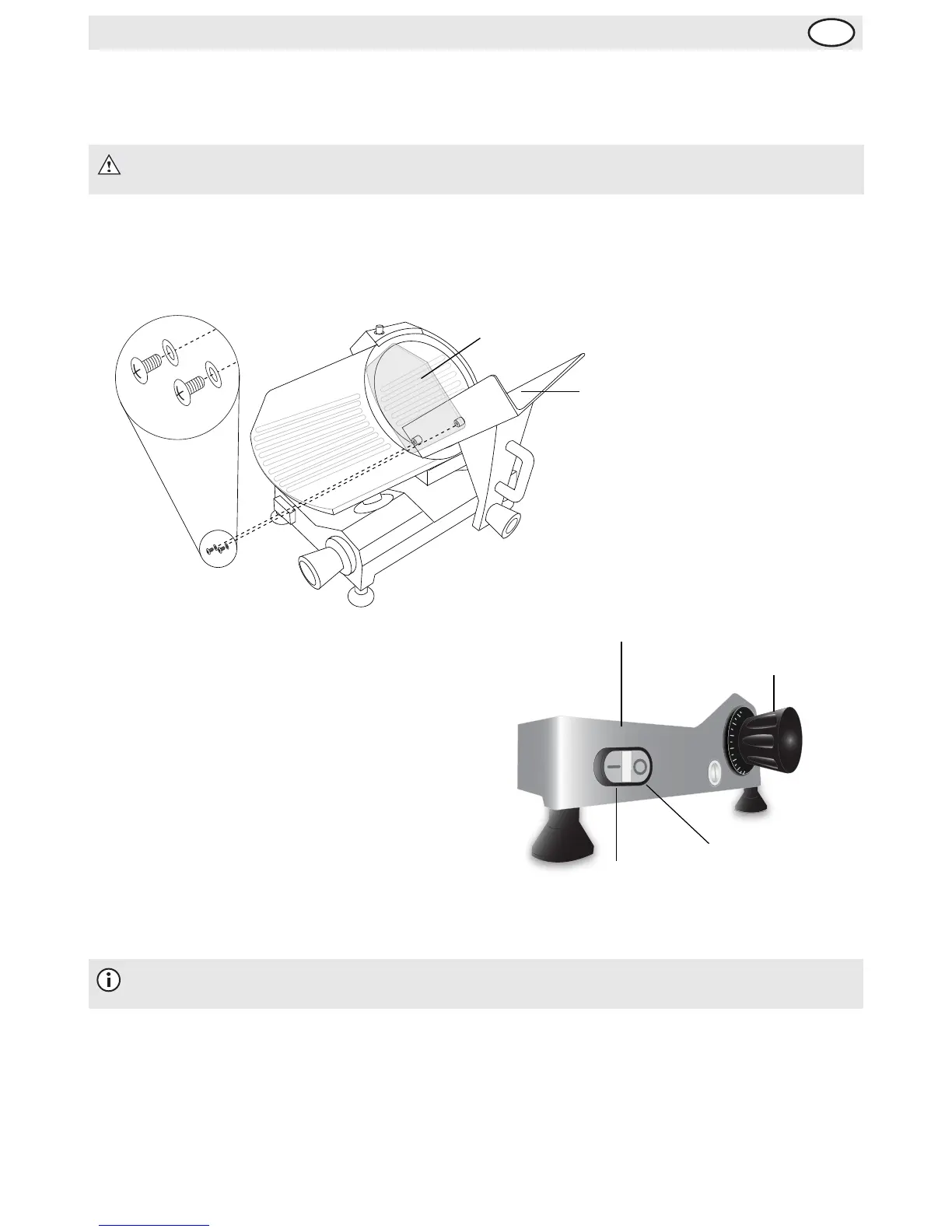 Sikkerhetsdeksel av plast er fjernet fra oppskjærmaskinen for å forebygge skade under transitt.