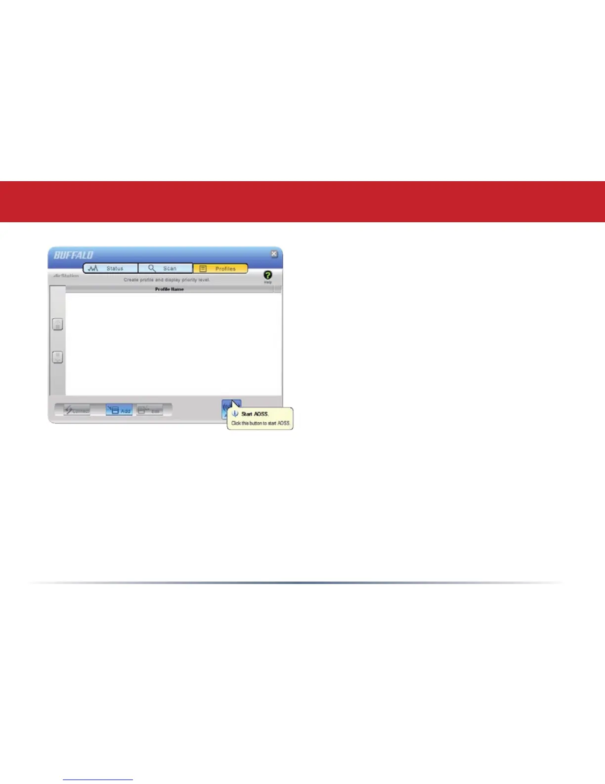 >>AirStation Utility >> Client Manager. The AOSS button is under the Proles