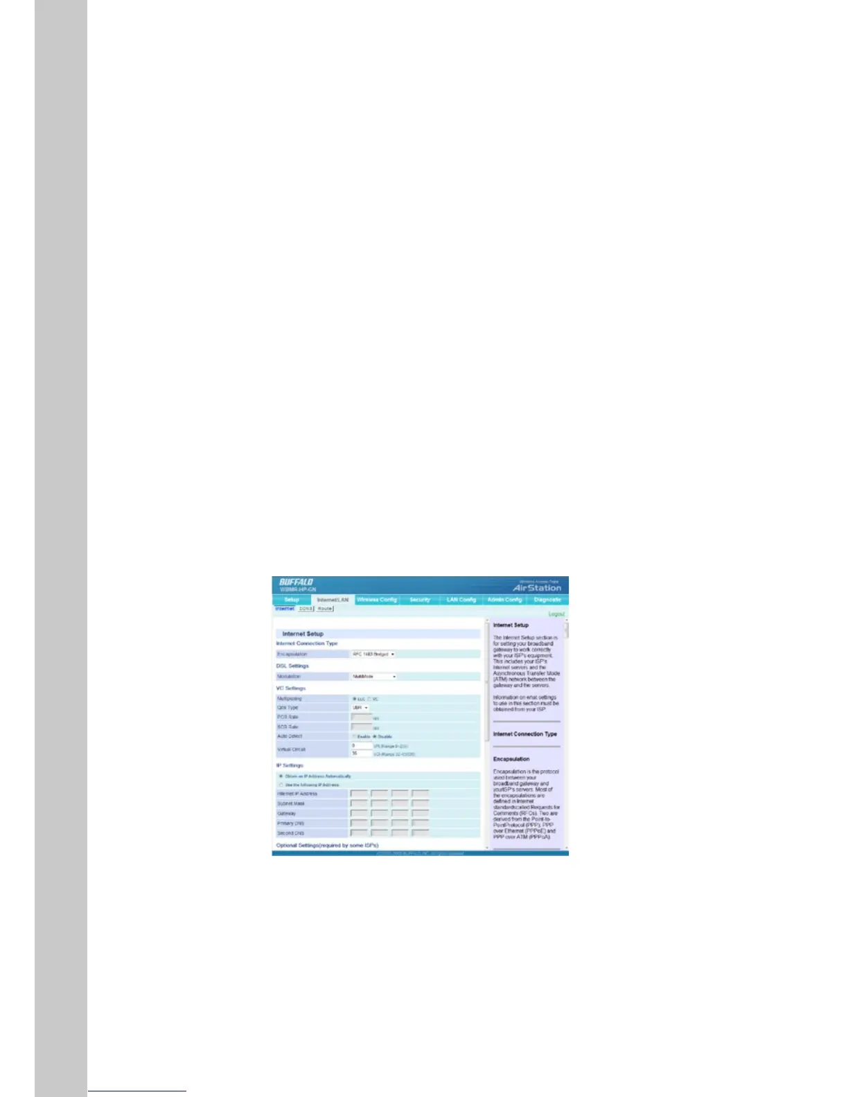 The Internet Setup section is for setting your broadband gateway to work