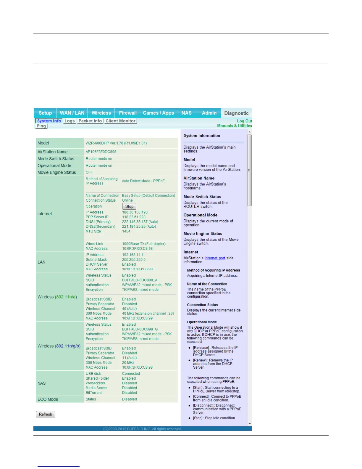 Buffalo WZR-600DHP - Diagnostic; System Info