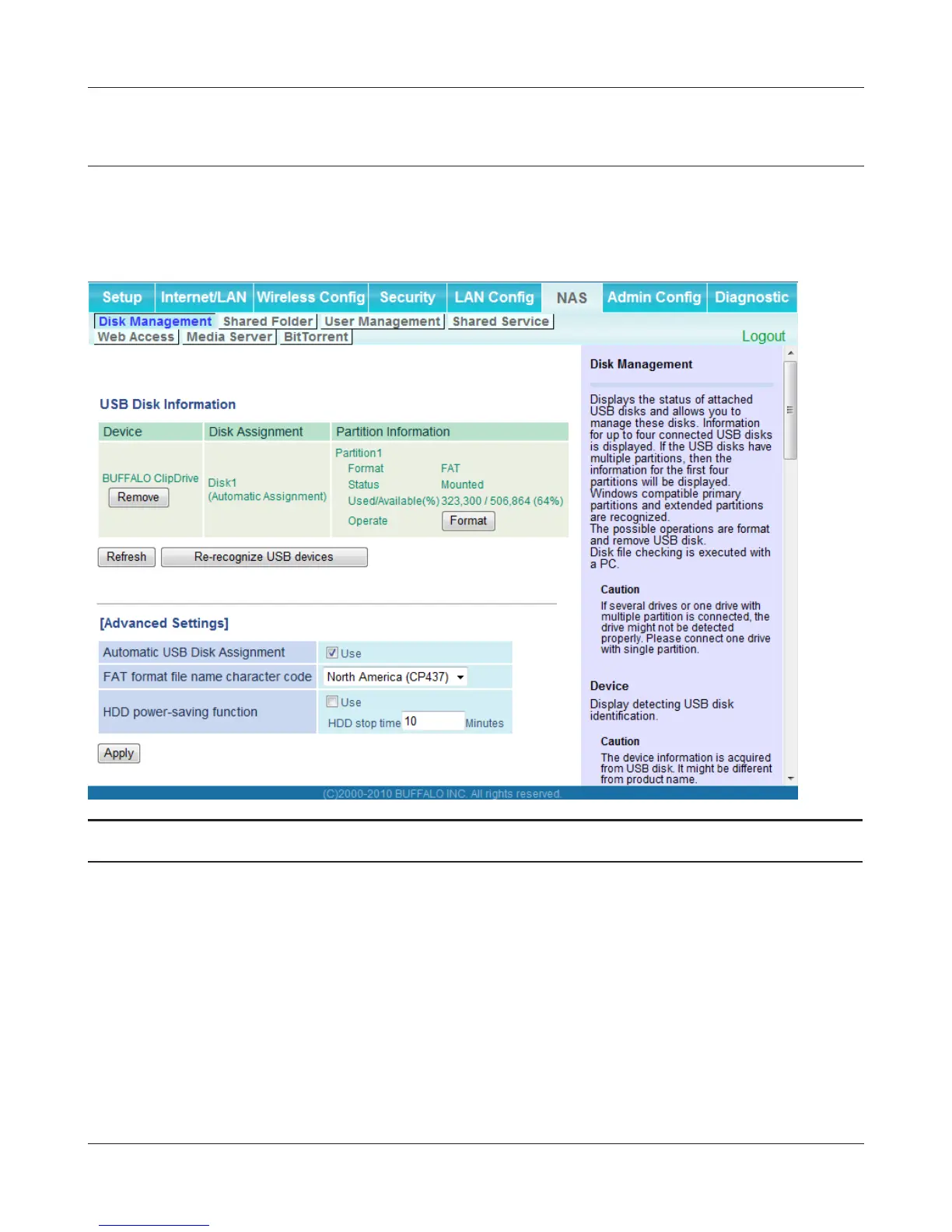 Re-recognize USB devices Click this to re-scan for connected USB disks.