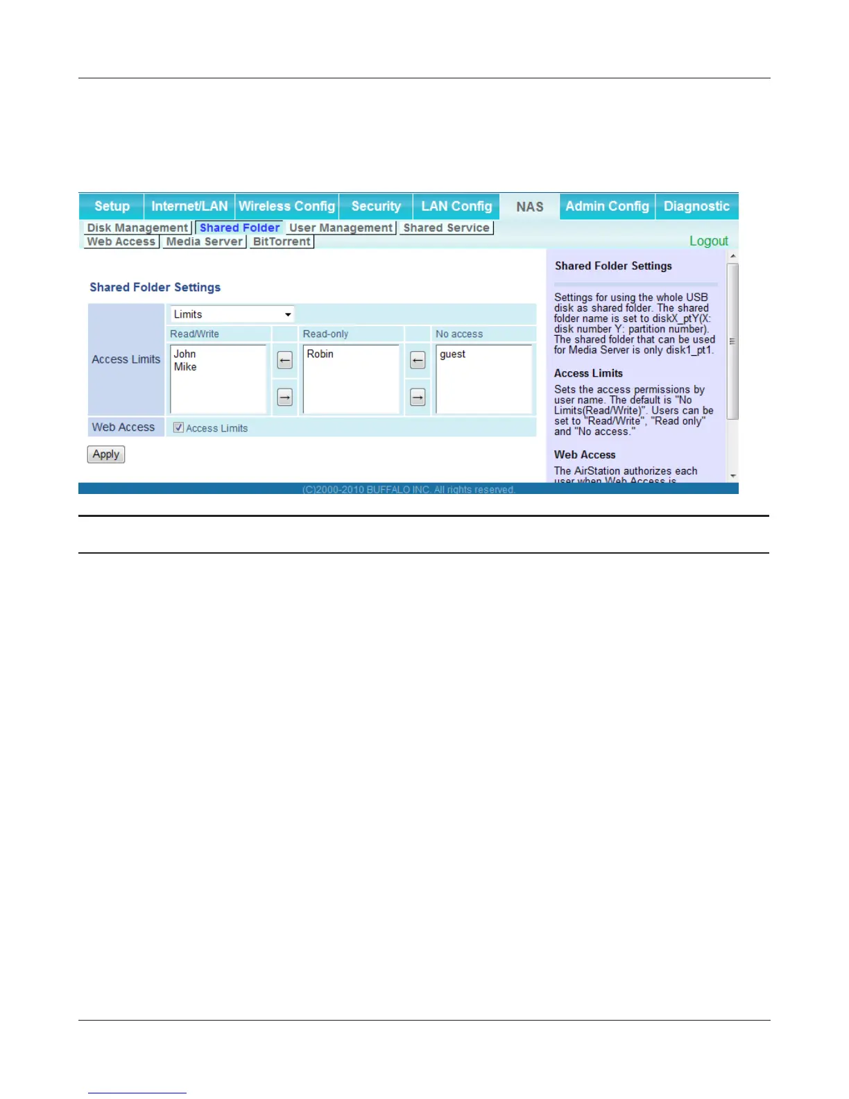 (Samba NAS), Web Access, Media Server, and/or BitTorrent may be
