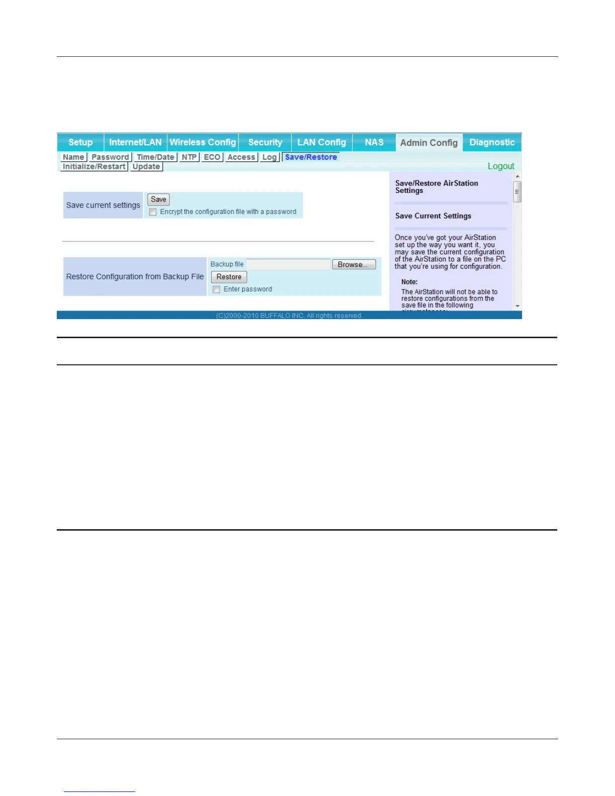 Save current settings Clicking [Save] will save the current conguration of the AirStation
