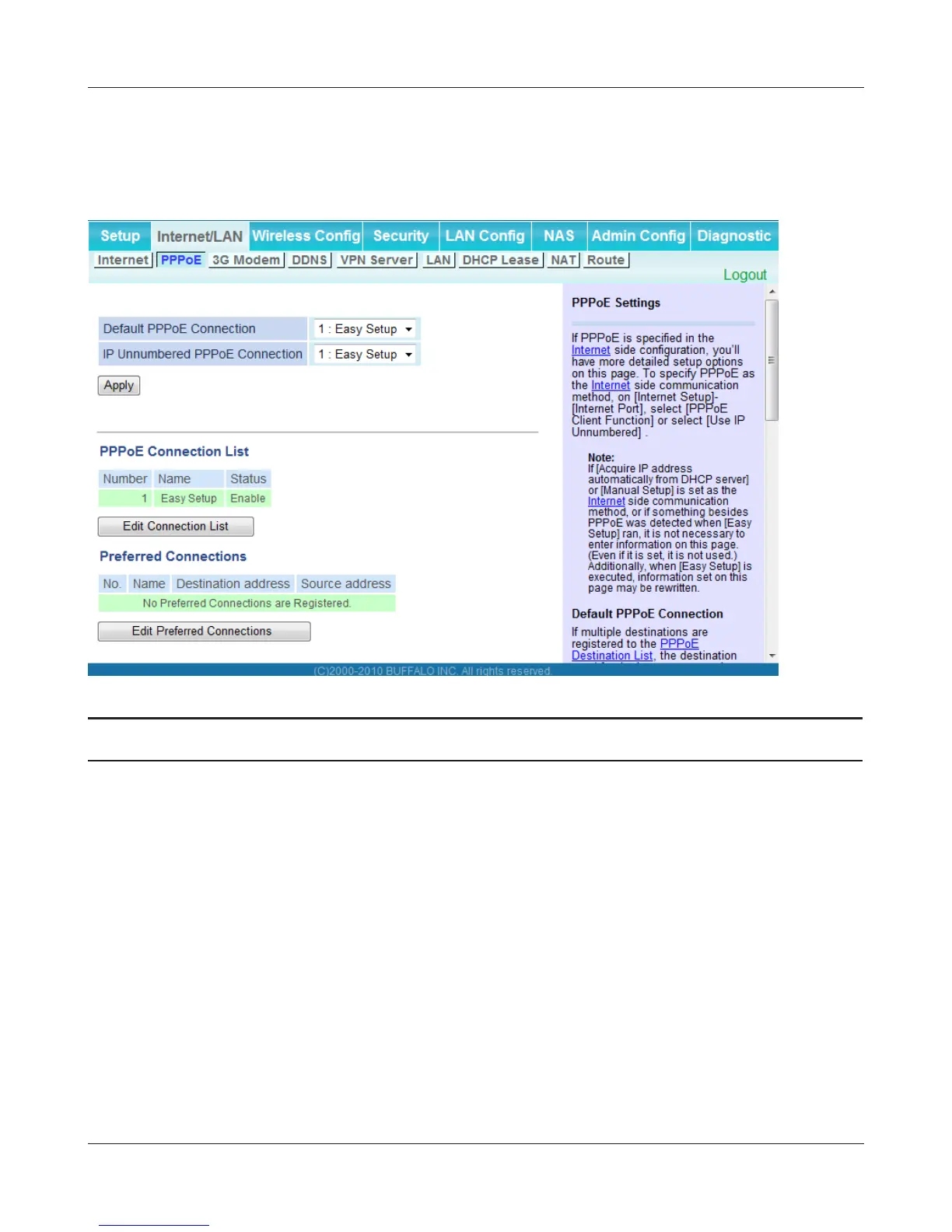 PPPoE Connection List Edit PPPoE destination. You can register up to 5 sessions.
