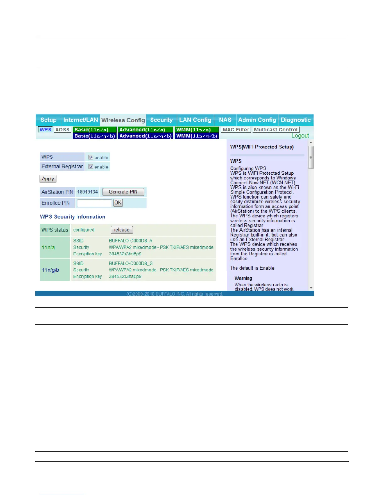 AirStation PIN Displays the PIN code of the AirStation. Clicking [Generate PIN]