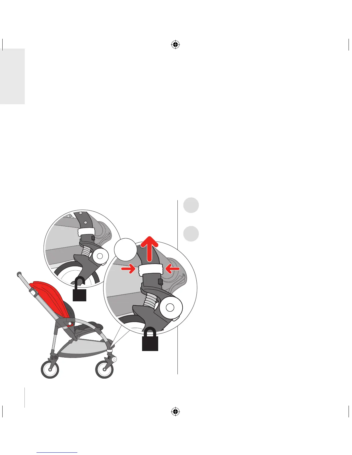 To unlock, squeeze and slide the wheel