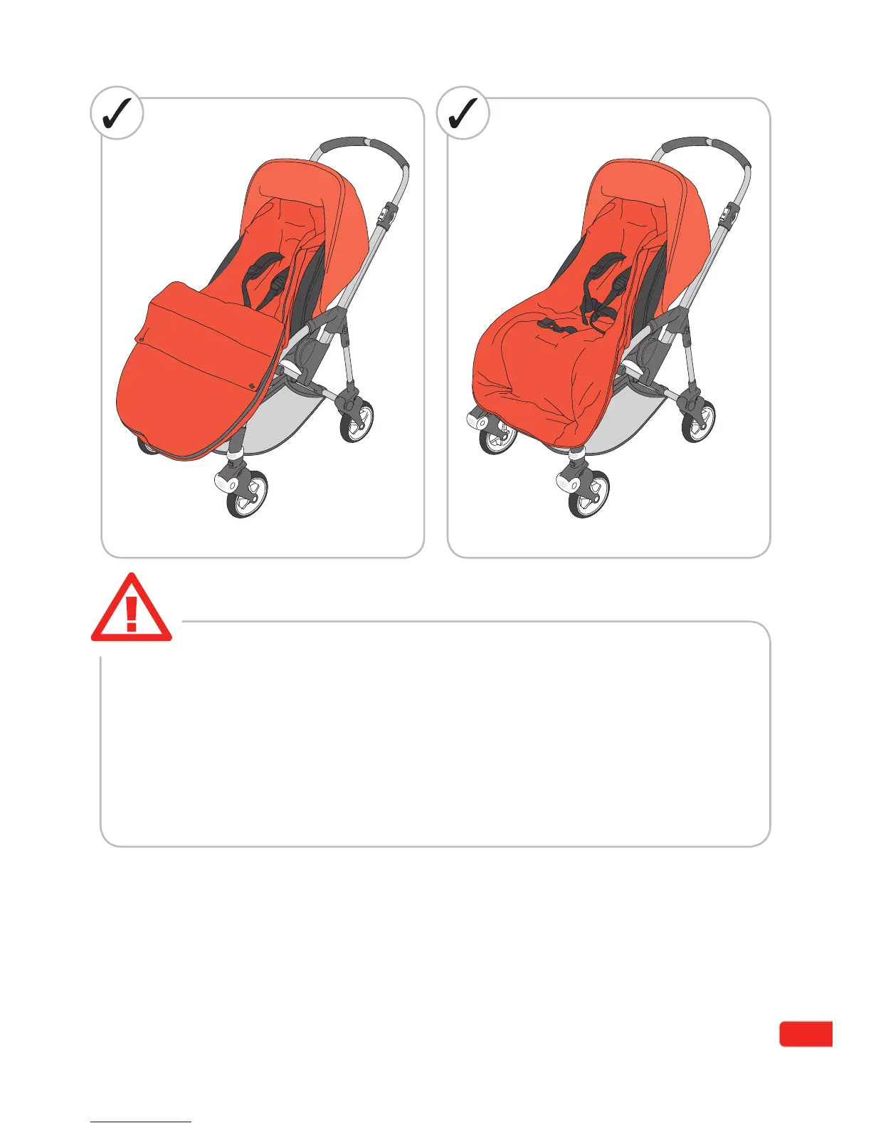 Never rest the top of the footmuff on your child’s face – ensure the height