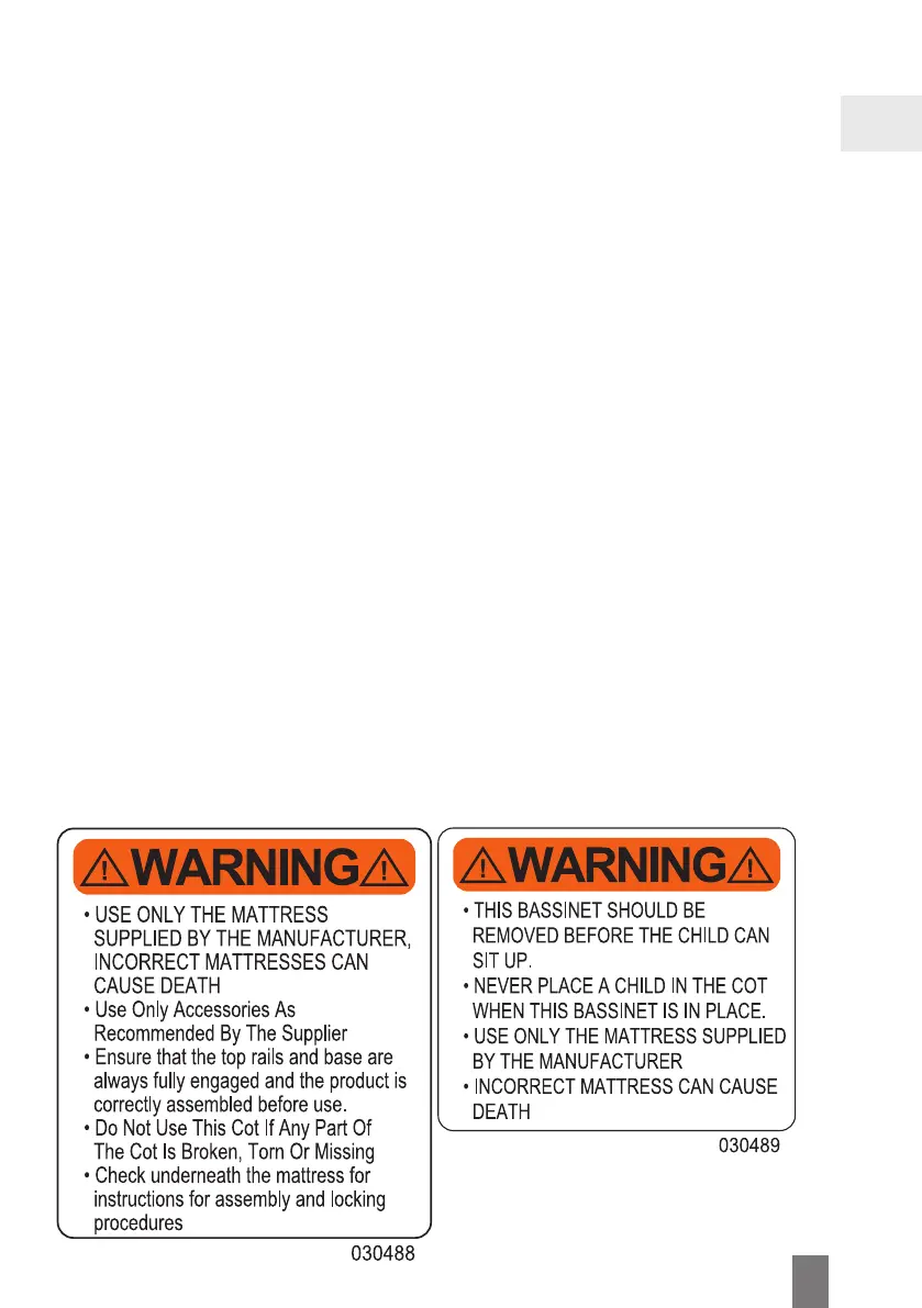 9. WARNING: Ensure that the portacot is fully erected and all the locking