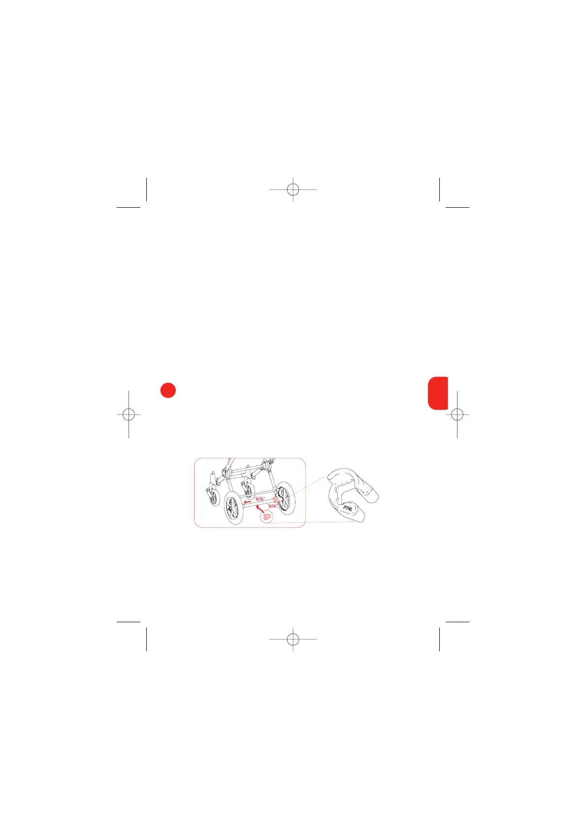 d. Empuje la abrazadera con la letra ''P74L'' en el eje de las ruedas