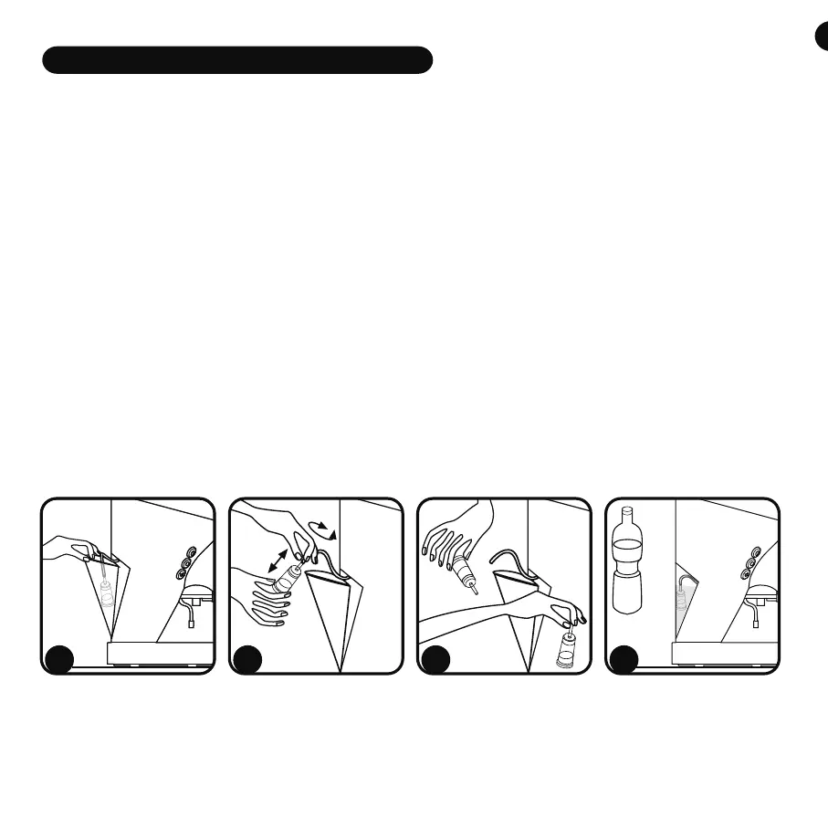4) Again insert the pipe with the filter into the tank and carefully refit the tank filled with fresh water onto