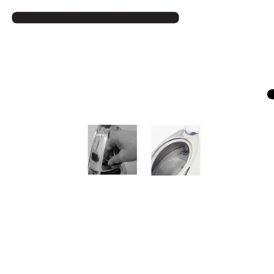 c)直接在水龍頭下方用水灌滿水壺,或者用水瓶,水壺或水罐向熱水壺中倒水至 所需水平。切勿注入過多的水。注