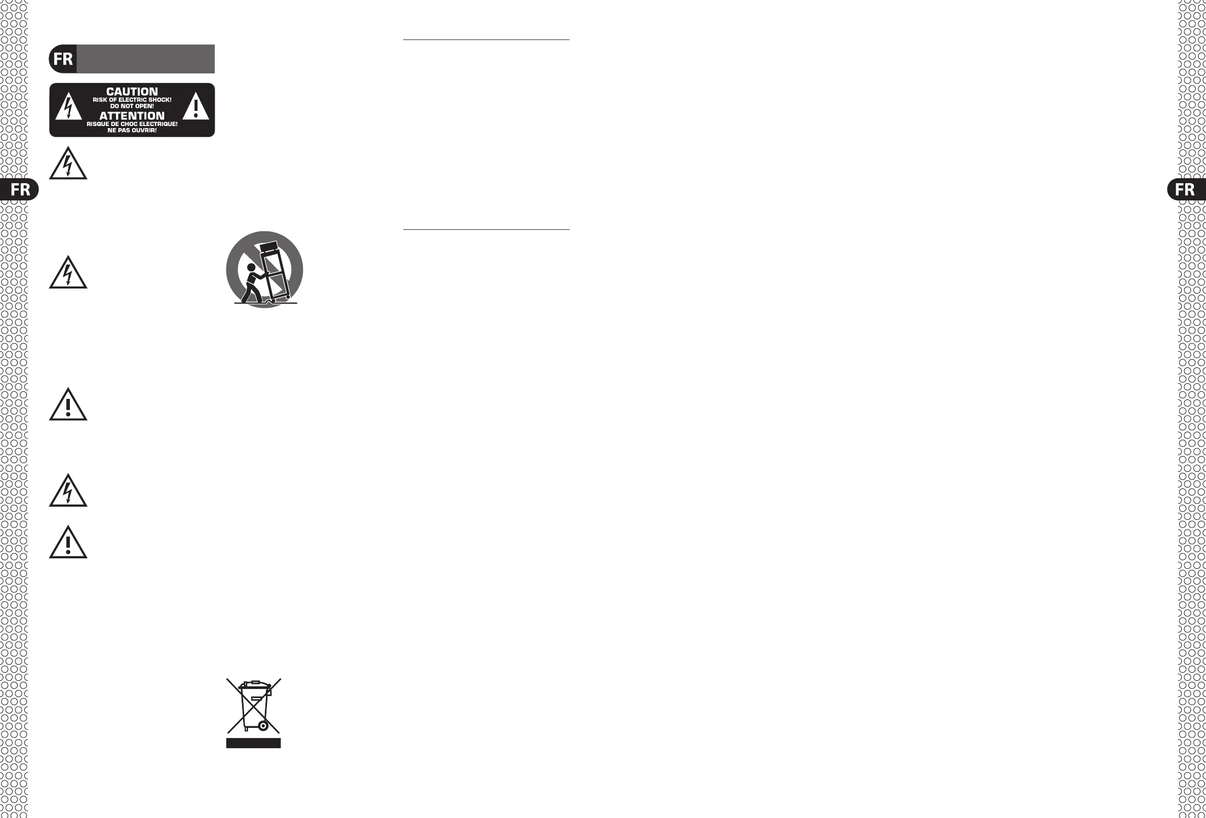 tout choc électrique mortel, n’ouvrez pas le couvercle ou