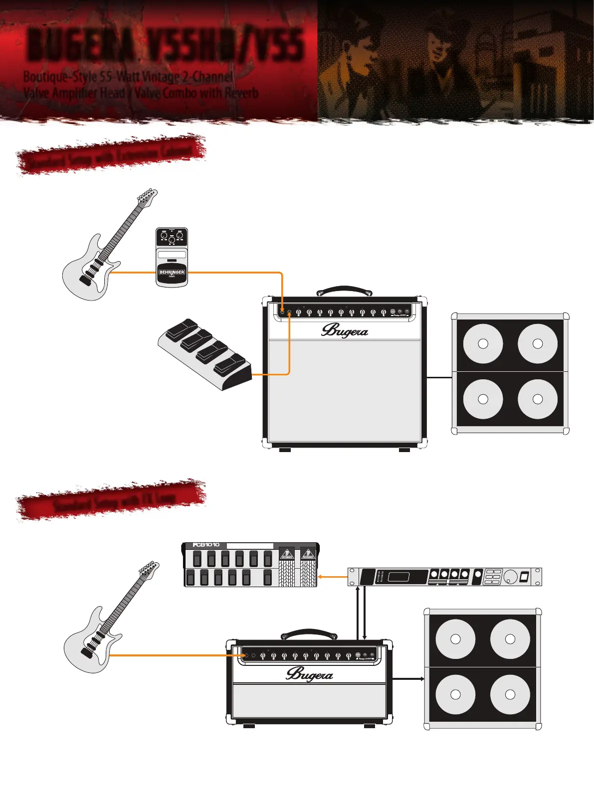 Bugera V55HD - Hook-up Diagrams; Standard Setup with Extension Cabinet; Standard Setup with FX Loop