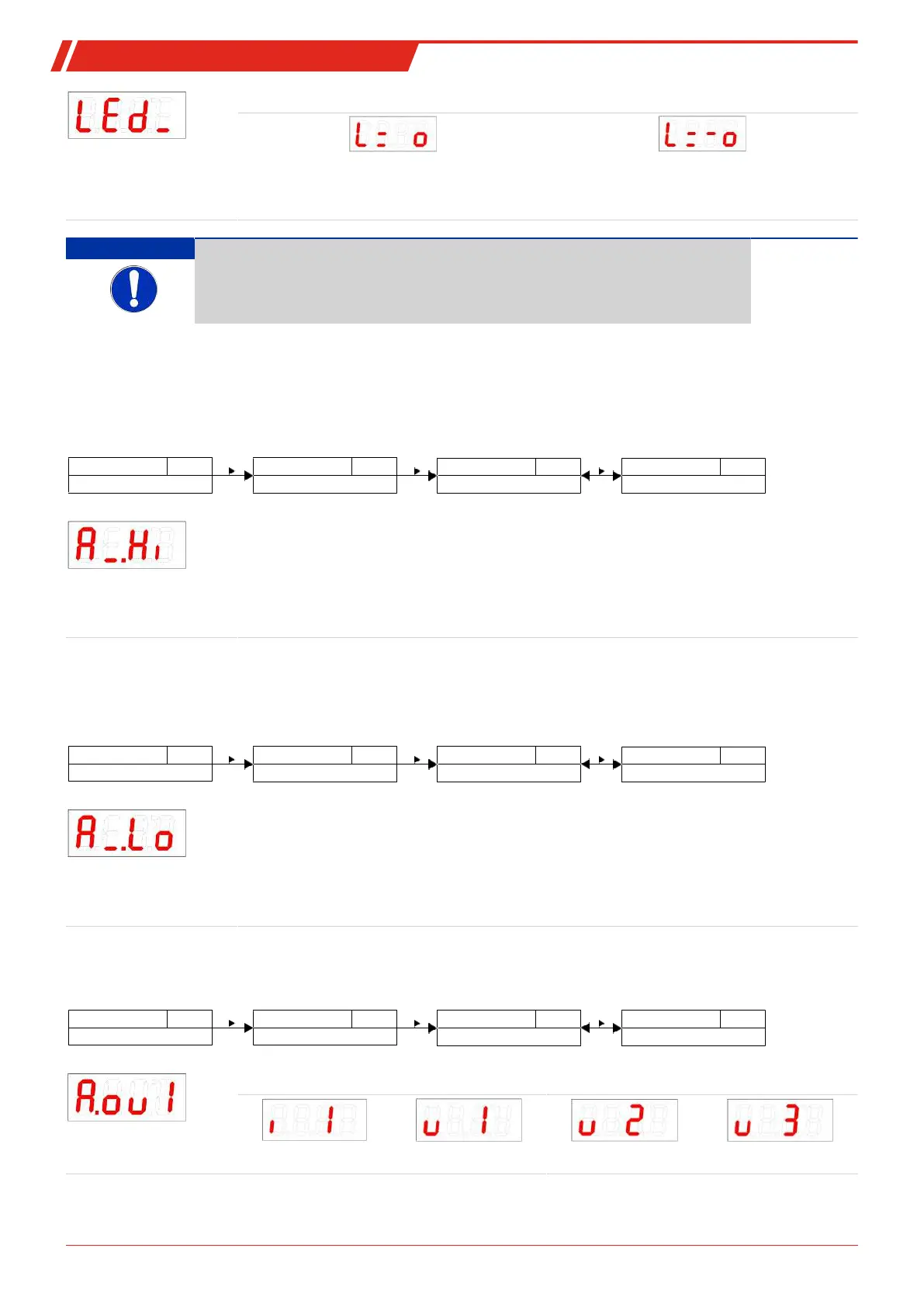 – The output range setting must not be less than 10 % of the measuring range: A I.Hi – A I.Lo >=