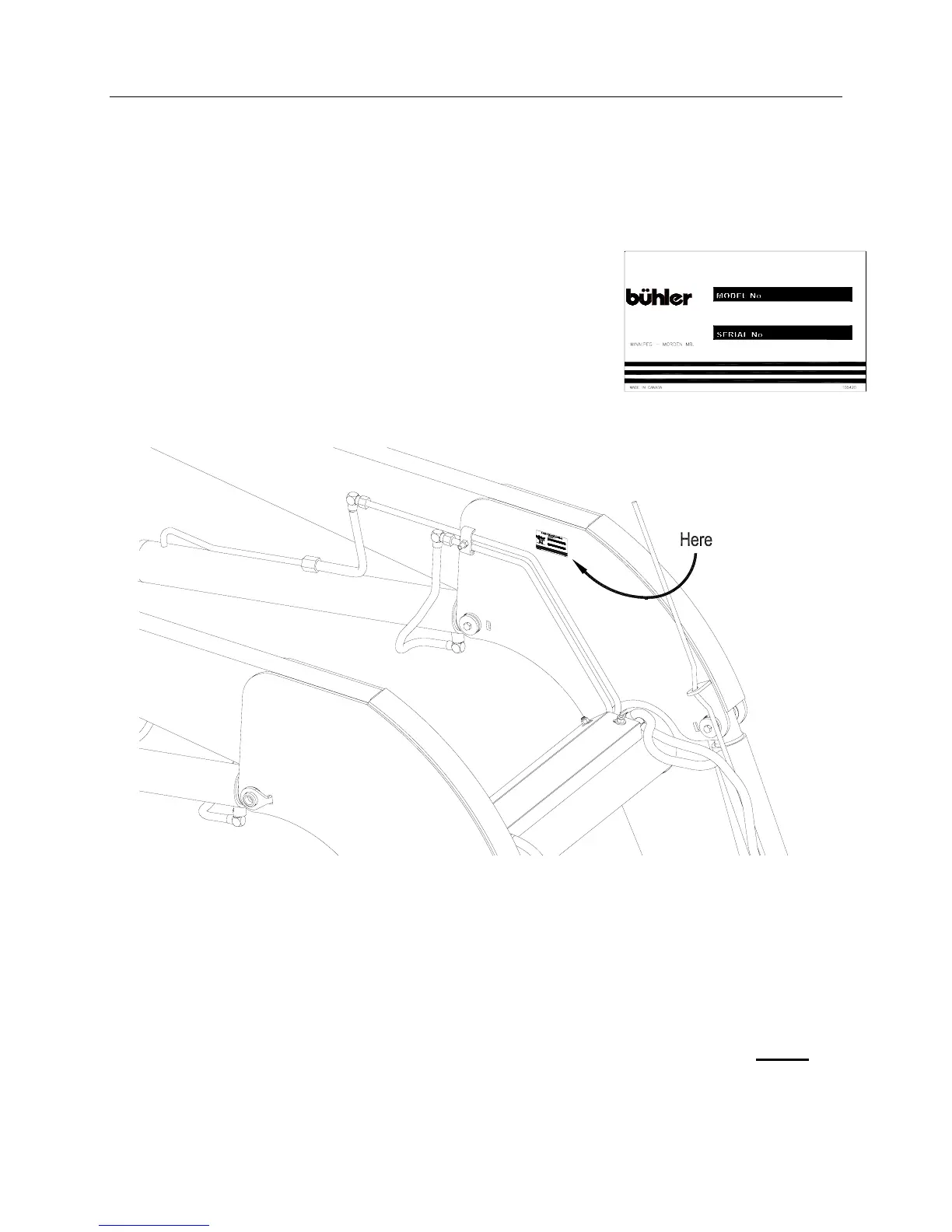 The serial decal will provide the model and date of manufacture of the loader and will be