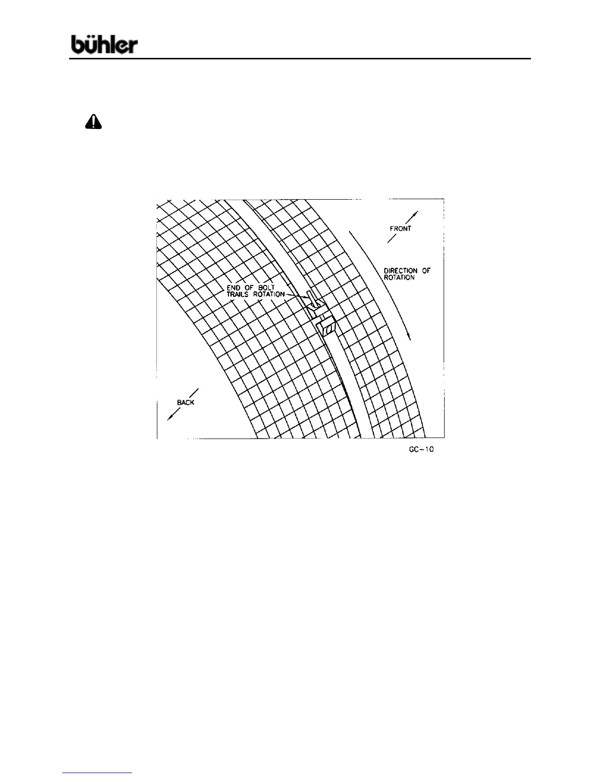 the end of the bolt trails the direction of rotation as shown in the drawing. This is