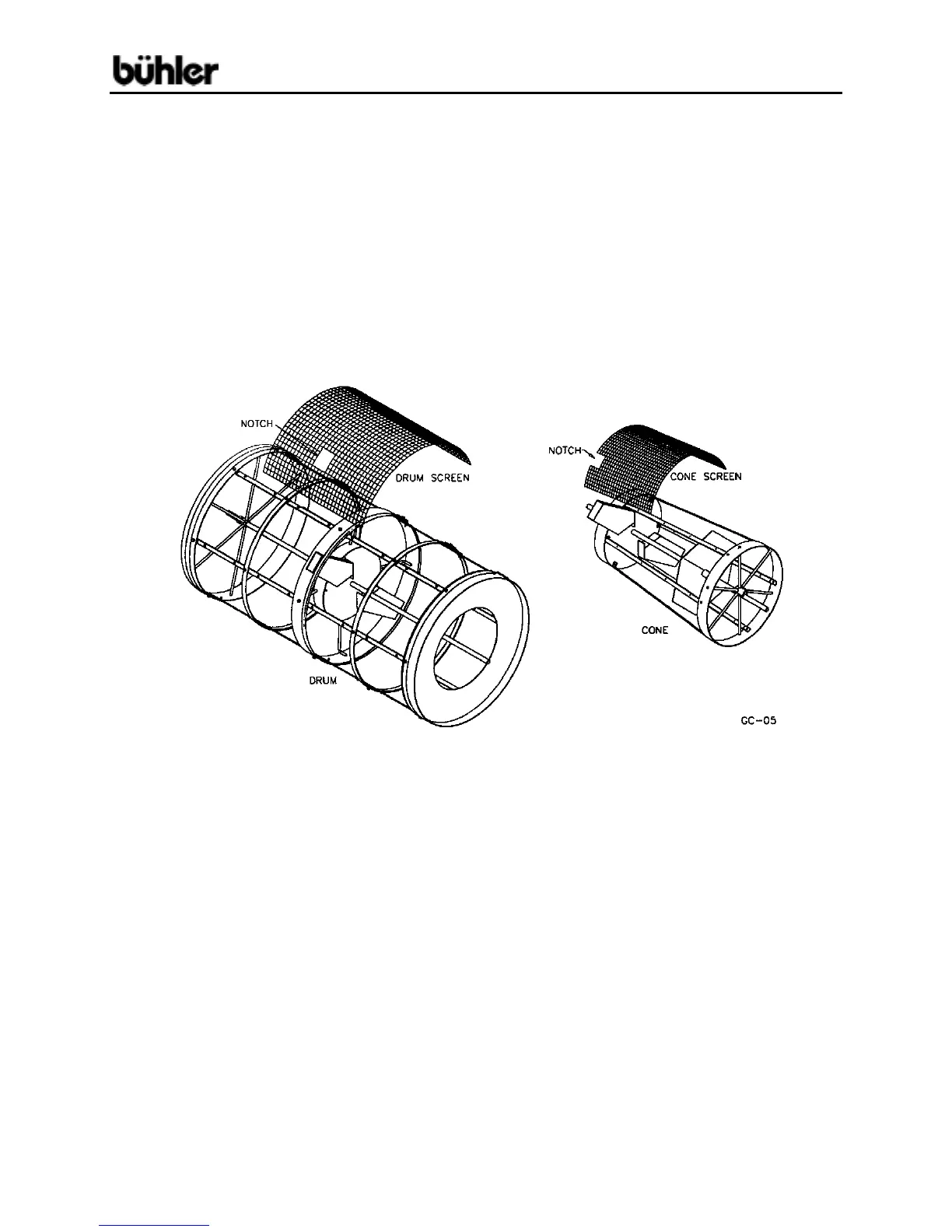 Both drum screens must also be notched to fit around the trash outlets as shown