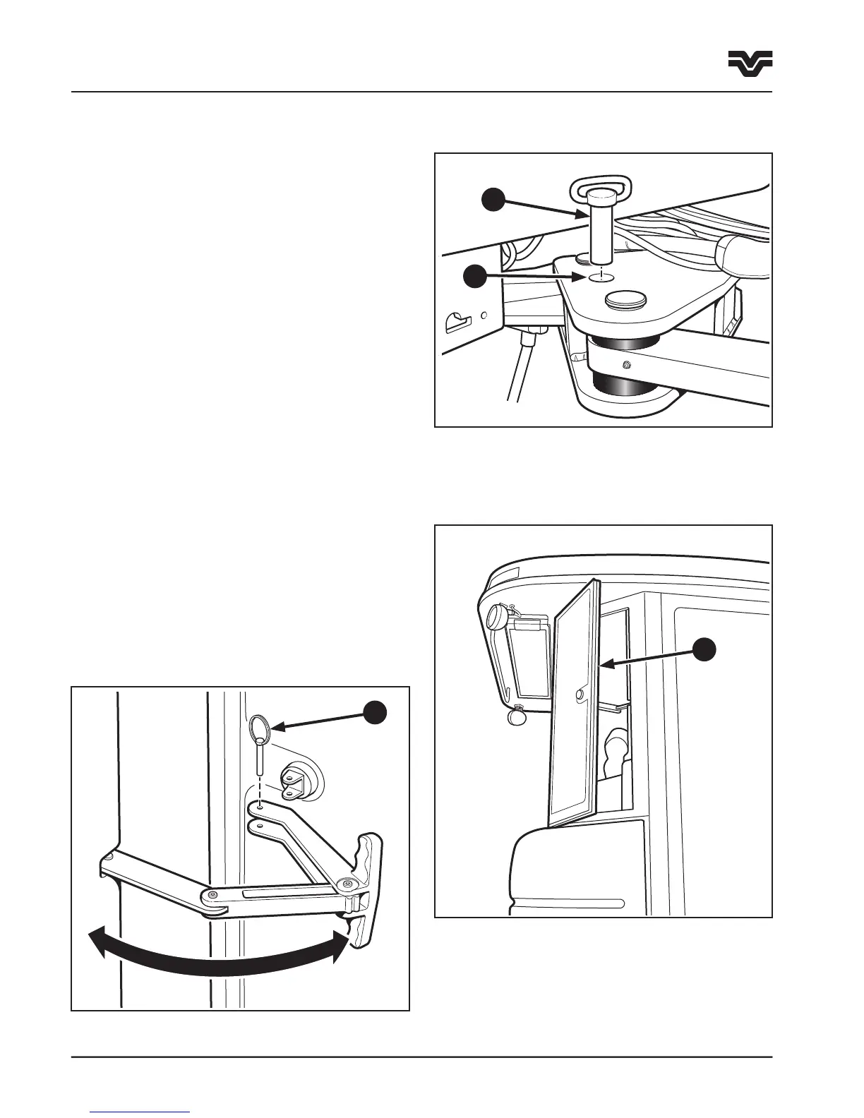 3. Remove the pin (1) from the storage position