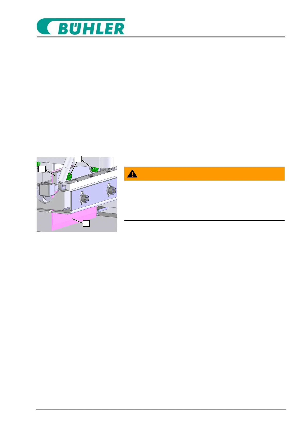 4. Loosen screws (1) at the fastening rail (2).