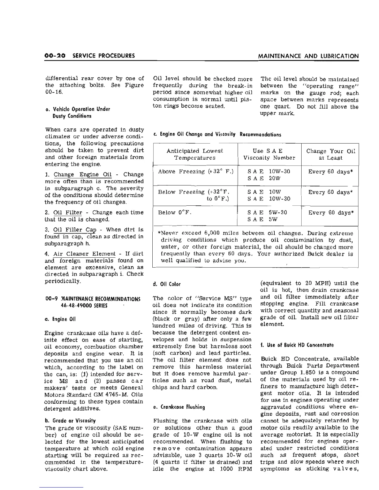 Buick 1966 Buick - Maintenance Recommendations 46-48-49000 Series; Vehicle Operation under Dusty Conditions; Oil Color