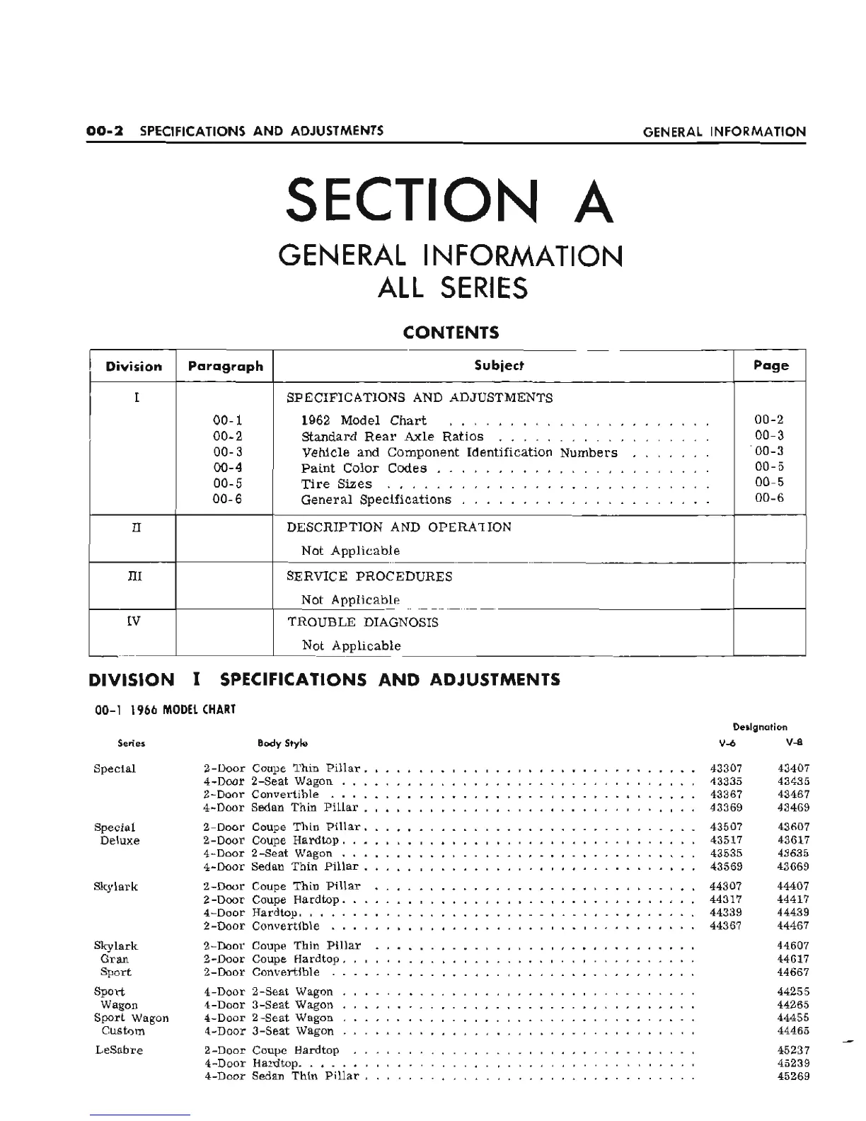 Buick 1966 Buick - SECTION A GENERAL INFORMATION ALL SERIES