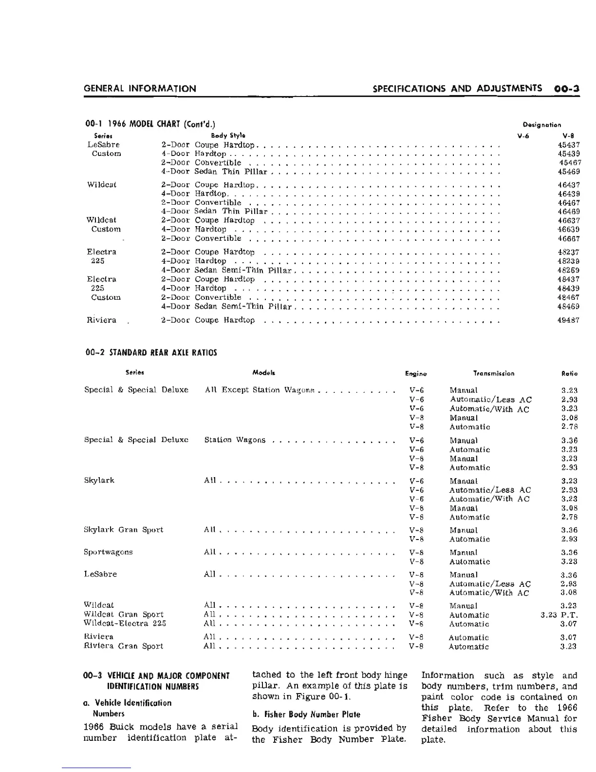 Buick 1966 Buick - Vehicle and Major Component Identification Numbers; Fisher Body Number Plate