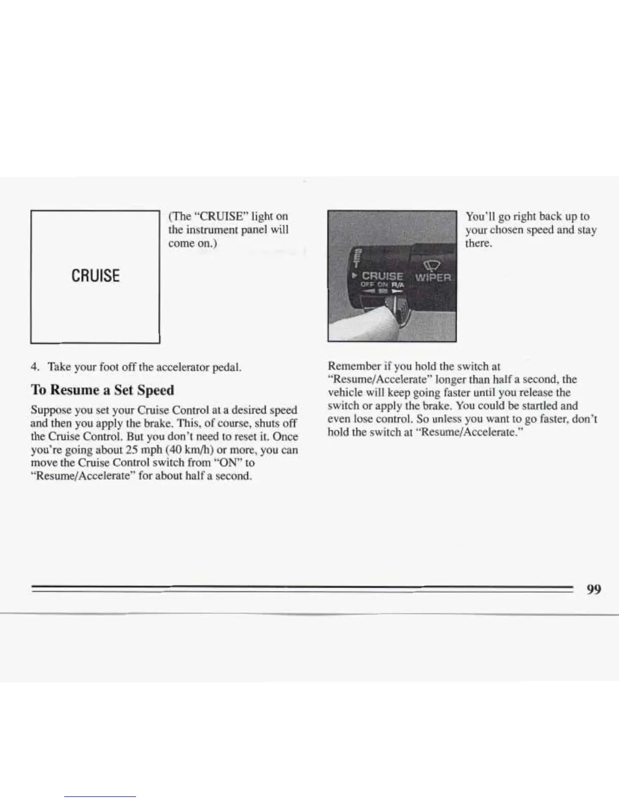 hold the switch at “Resume/Accelerate.”
