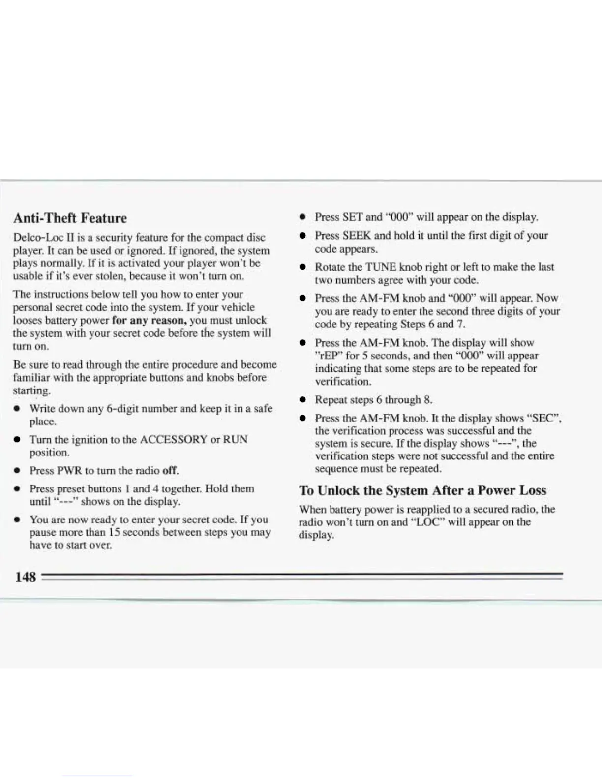 personal secret code into the system. If your vehicle