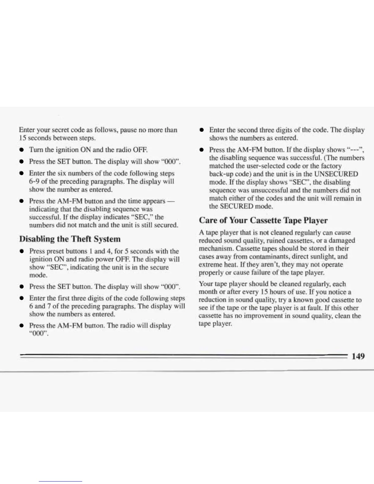 mode. If the display shows “SEC“’, the disabling