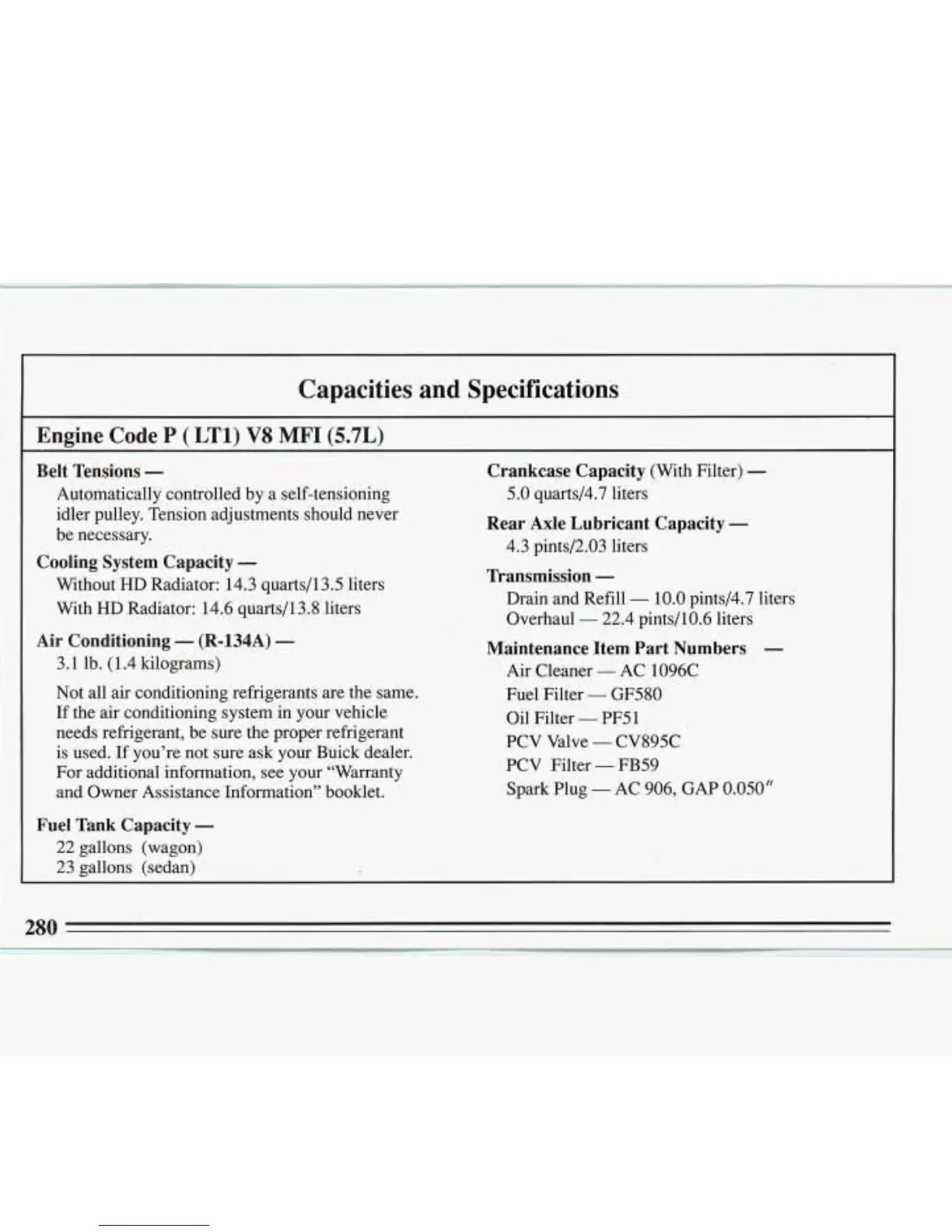 Capacities and Specifications