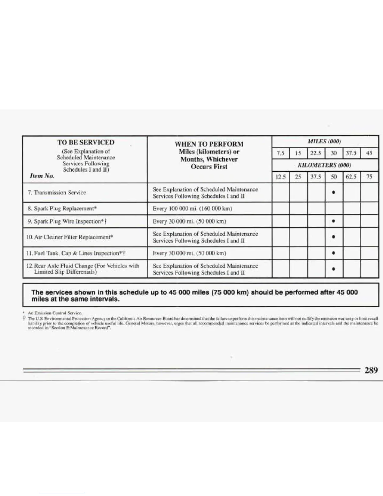 liability prior to the completion of vehicle useful life. General Motors, however, urges that all recommended maintenance services be performed at the indicated intervals and the maintenance be