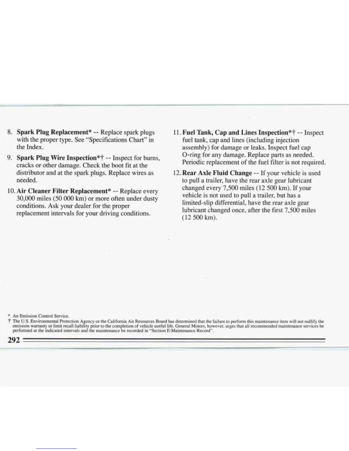 the California Air Resources Board has determined that the failure to perform this maintenance item will not nullify the