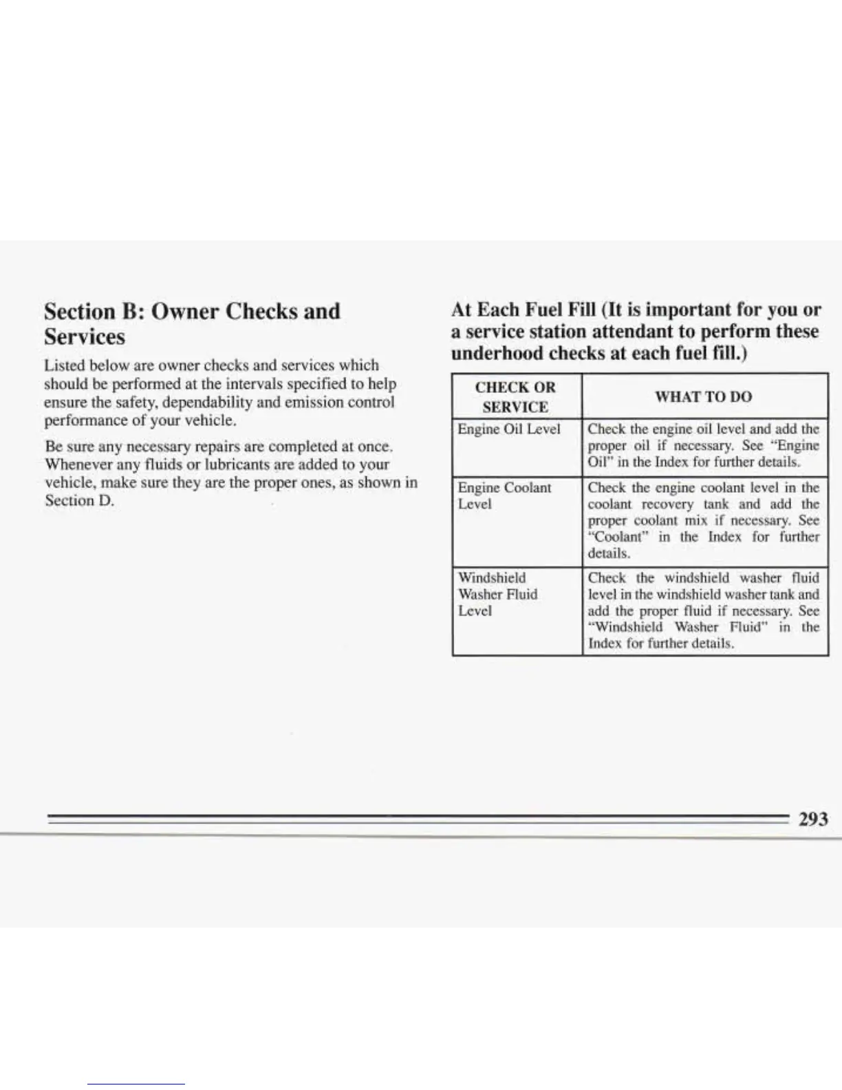 underhood checks at each fuel fill.)