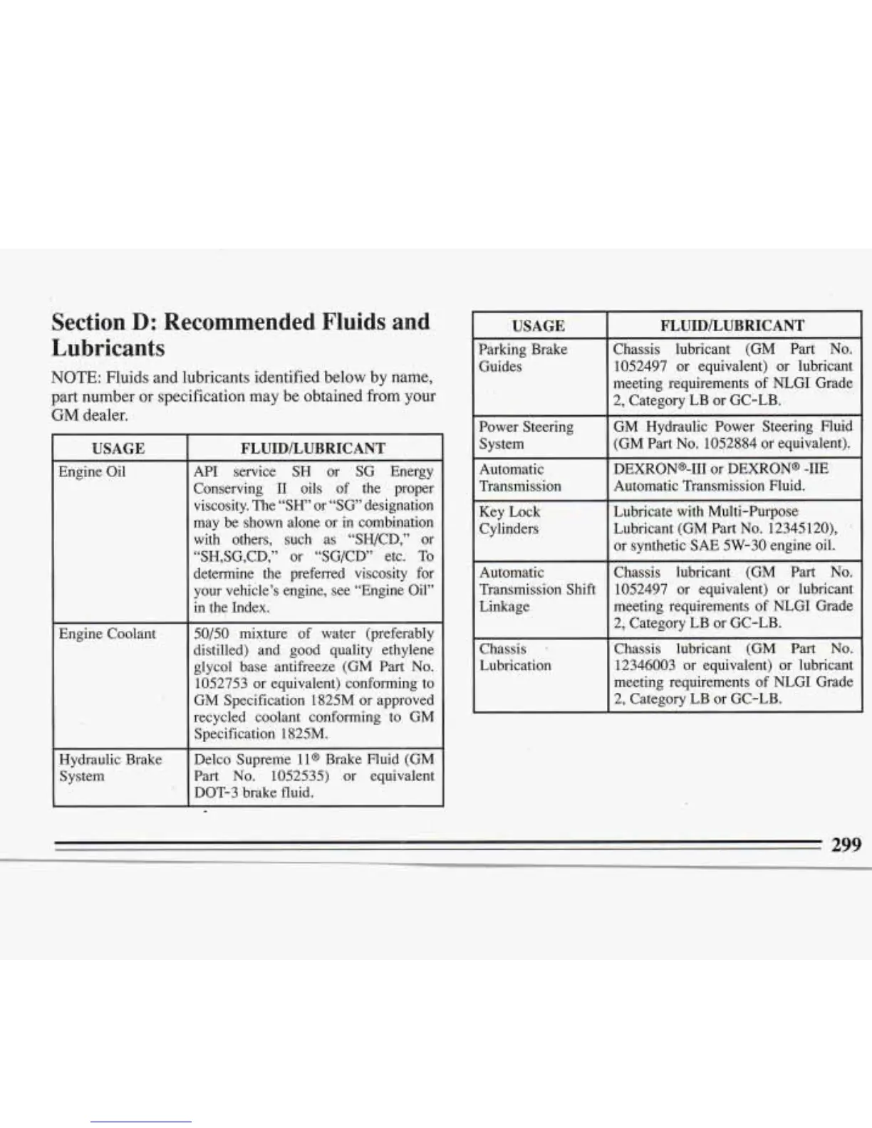 Fluids and lubricants identified below by name,