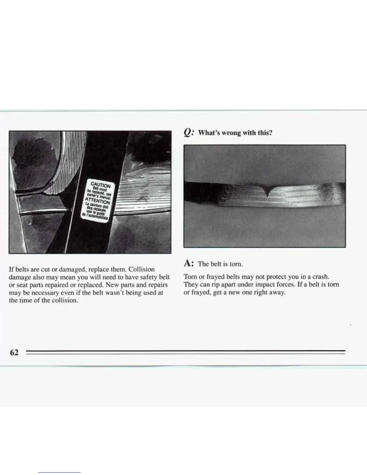 Torn or frayed belts may not protect you in a crash.