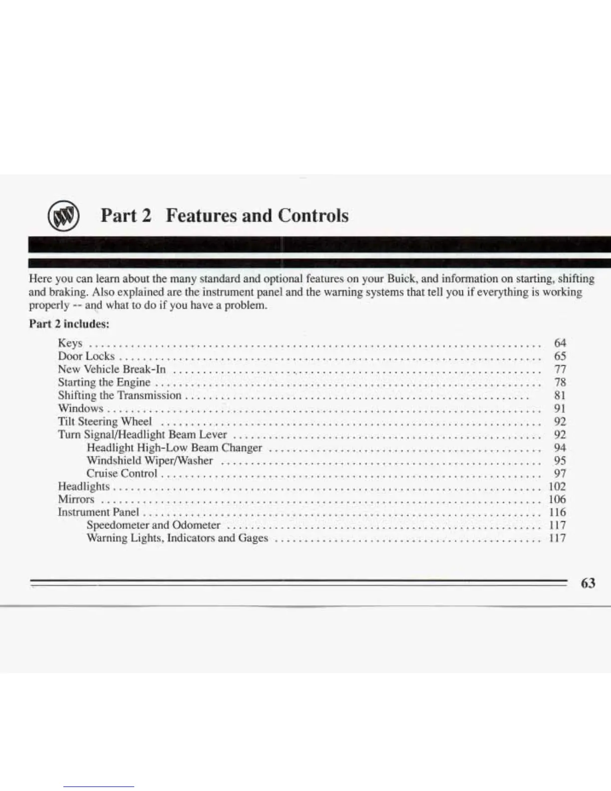 Here you can learn about the many standard and optional features on your Buick. and information on starting. shifting