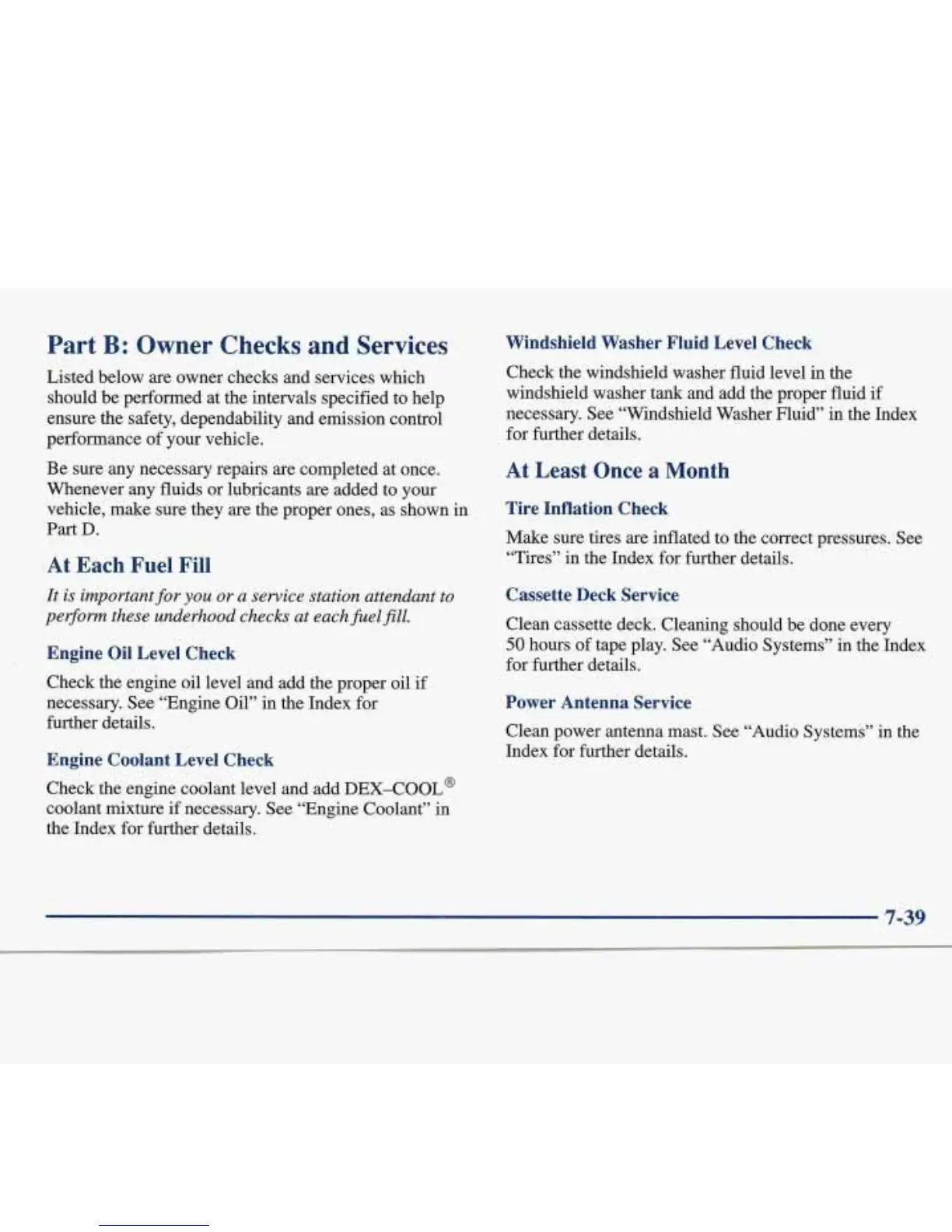 necessary. See “Windshield Washer Fluid” in the Index