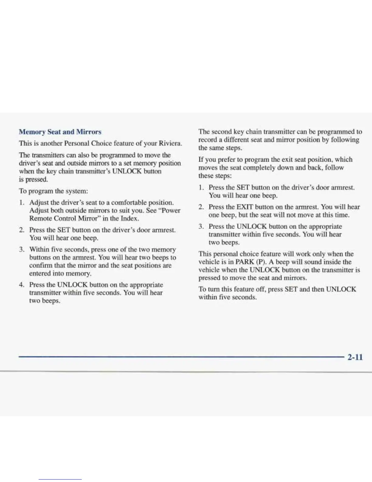 you prefer to program the exit seat position, which