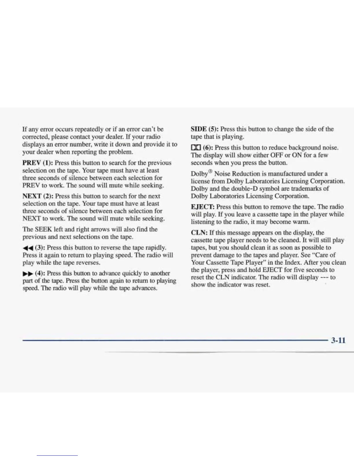 Press this button to remove the tape. The radio