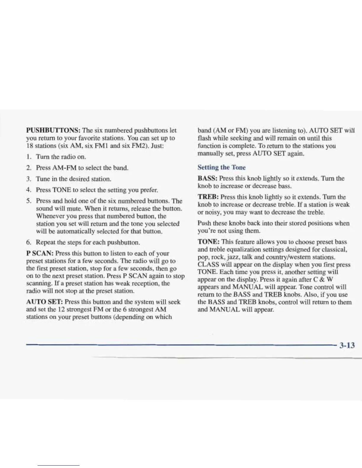 preset stations for a few seconds. The radio will go to