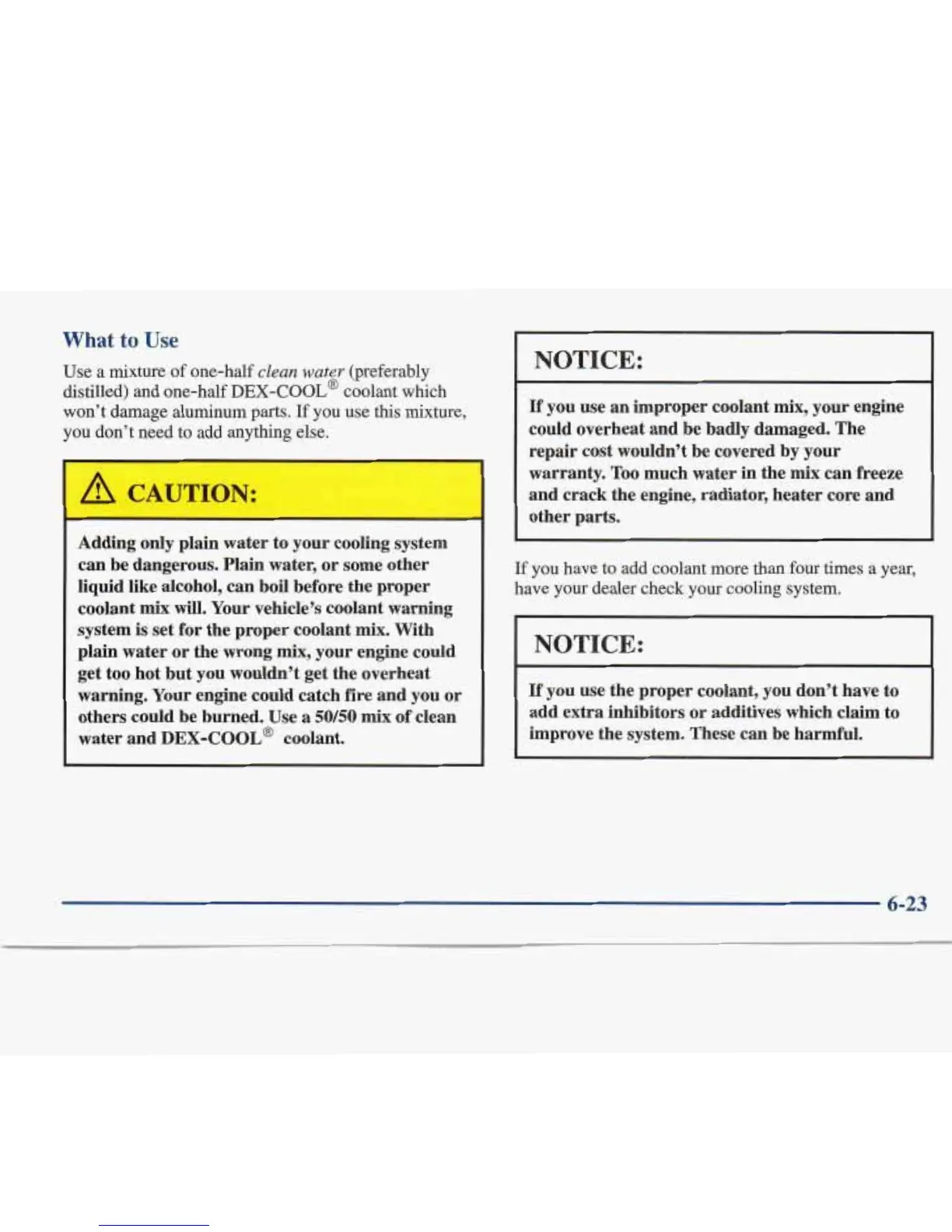 you use an improper coolant mix, your engine