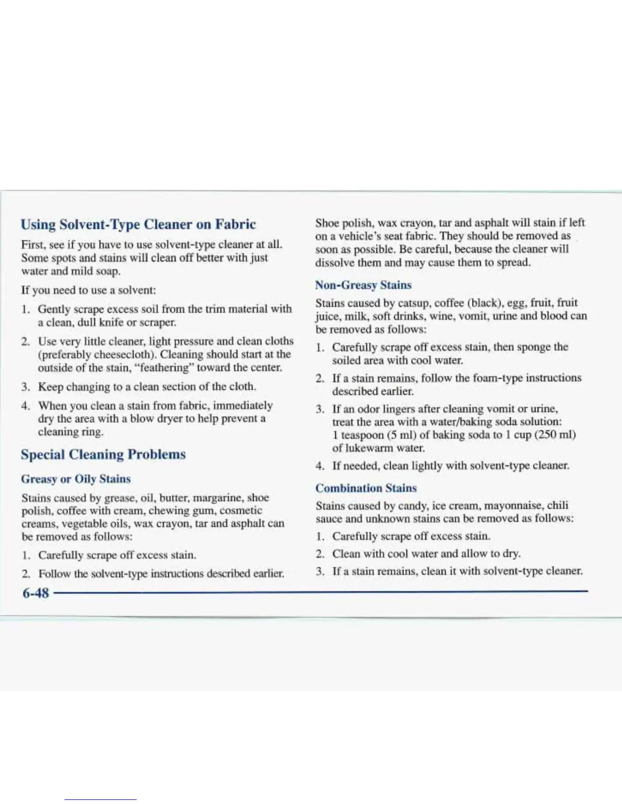Stains caused by catsup, coffee (black), egg, fruit, fruit