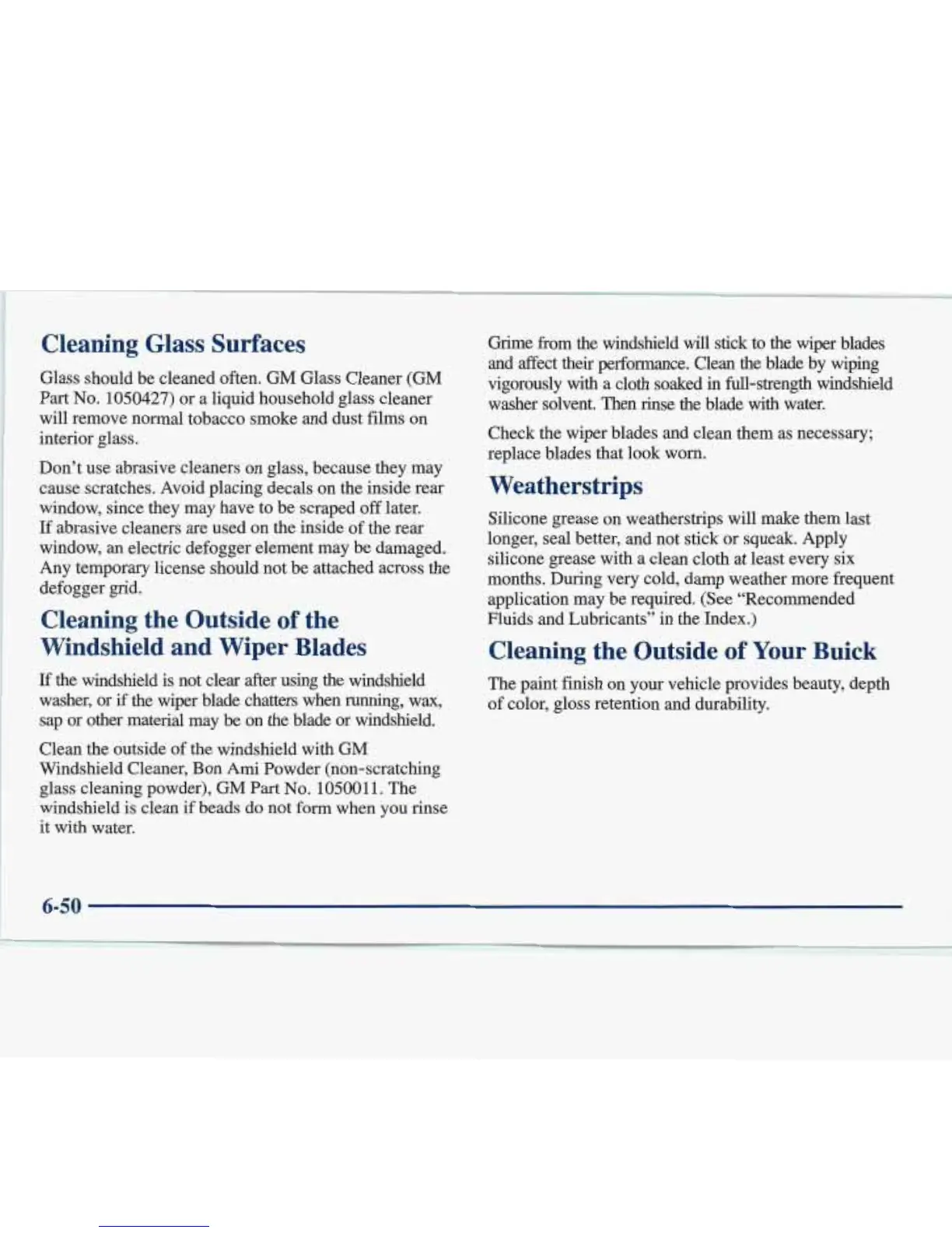 Glass should be cleaned often. GM Glass Cleaner (GM