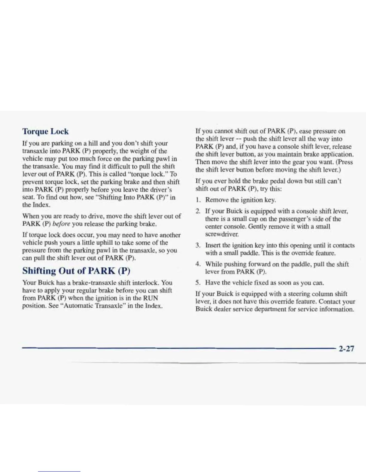 your Buick is equipped with a steering column shift